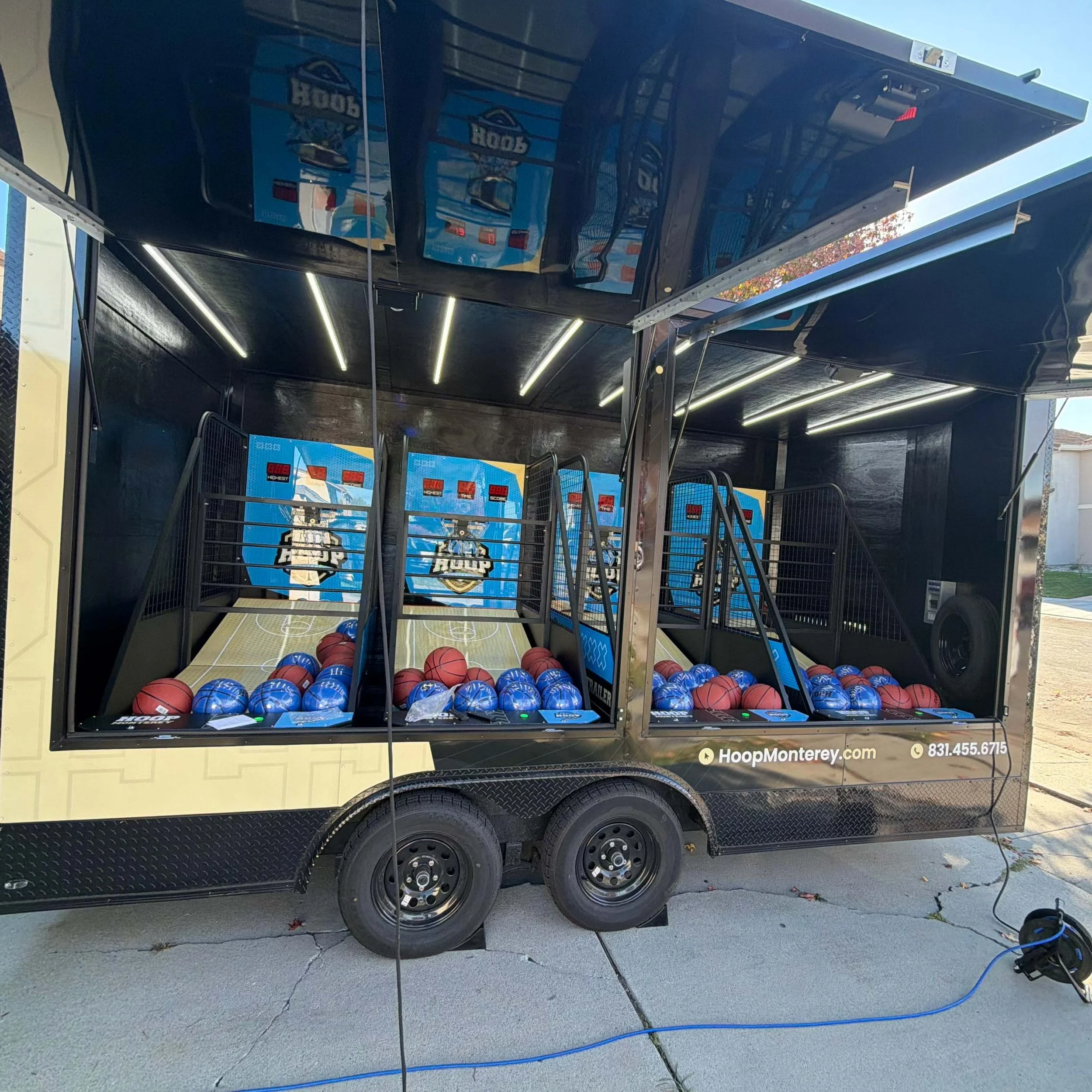 We envisioned a new venture in the event rental space focused on children's entertainment. Surprisingly, there was a gap—no mobile arcade trailers centered around basketball. Drawing on our entrepreneurial spirit and experience, we found the Hoop Trailer business! We knew this was something that had to be a reality in the Monterey Location. Thus, Hoop Monterey was born—a mobile arcade trailer designed to bring the thrill of basketball right to your doorstep.